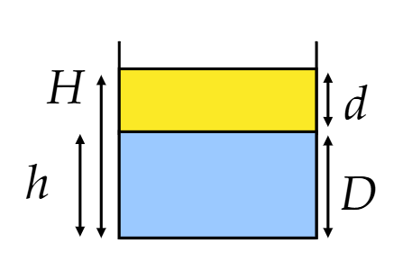 (b) Determine os valores de $$h$$ e $$H$$, em cm, após a cuba ter sido retirada da geladeira, apoiada em uma mesa horizontal e esperado até que toda a manteiga tenha se derretido.
