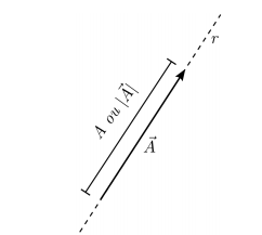 , a direção é definida pela reta r e o sentido é o apontado pela “flecha” no vetor.