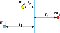 Figura 1: Esquema representativo das grandezas relevantes para o momento de inércia no caso discreto.