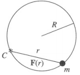 Uma partícula de massa m se move em uma órbita circular de raio R sob a influência de uma força central. O centro da força C fica em um ponto do círculo. Qual é a lei da força?