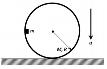 a) (Ipho 2014) Encontre a força de interação F entre o disco e o cilindro no momento em que o disco passa o ponto mais baixo de sua trajetória. Suponha que o atrito entre a partícula e a superfície interna do cilindro está ausente, e o cilindro move-se no plano sem escorregar. A aceleração da queda livre é g.