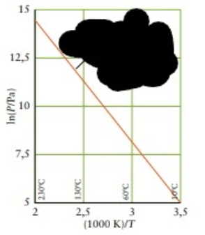Nojima em um belo dia estava bebendo uma xícara de café enquanto estudava, até que infelizmente deixou cair um pouco de café no livro que ele estava analisando, de forma que a mancha de café cobriu o coeficiente angular da reta do gráfico abaixo e também cobriu a legenda que dizia de qual composto que se tratava tal gráfico.