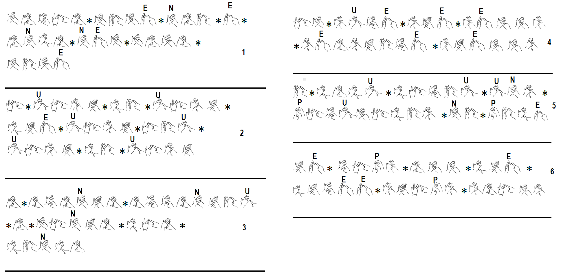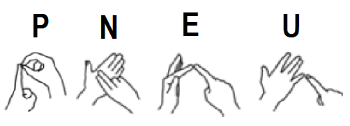 Como vemos na palavra “pneu”, o “N” é feito com dois dedos na palma da mão. Assim, podemos supor que o “M” seria feito com três dedos, por causa das três “pernas”.