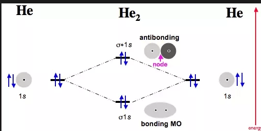 Isso significa que os dois átomos de Hélio não estão unidos por ligação covalente – isto é, a molécula de